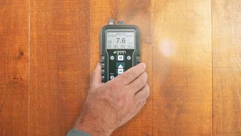 Houten en houtsoorten vloeren; de houtvochtigheidsmeetschaal op een vloervochtigheidsmeter kan het vochtgehalte van % meten. De schaal kan worden aangepast om verschillende soorten hout te lezen. De Tramex ME5-vochtmeter biedt houtloze houtvochtgehaltemetingen en de Concrete Moisture Encounter CMEX5 of Moisture Encounter MEX5 kan worden gebruikt met een houten pinprobe om houtvochtgehalte %-metingen te verkrijgen.